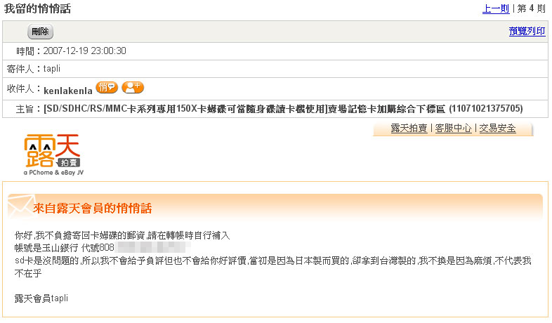 所以我改用悄悄話功能,我評價不足5都會這樣做,kenlakenla有200多的評價幹麻不這樣做?!