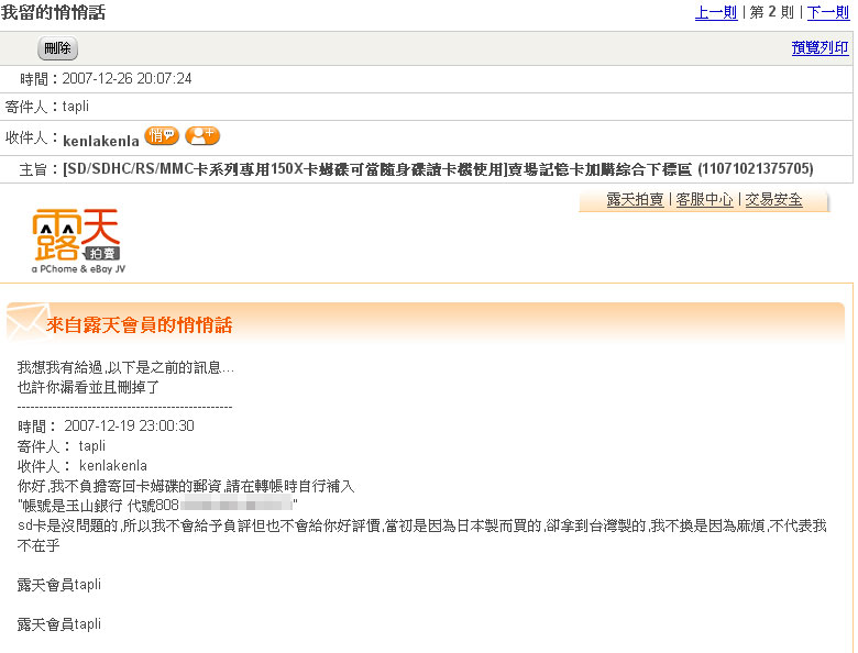 真有退款誠意幹麻不主動詢問我的帳號,而且我又不是沒給,是kenlakenla自己漏看
