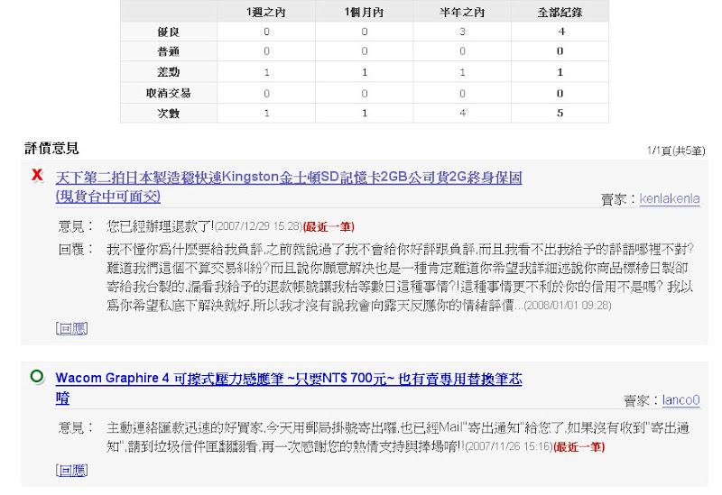 難道你希望我詳細述說你商品標榜日製卻寄給我台製的,漏看我給予的退款帳號讓我枯等數日這種事情?!這種事情更不利於你的信用不是嗎?